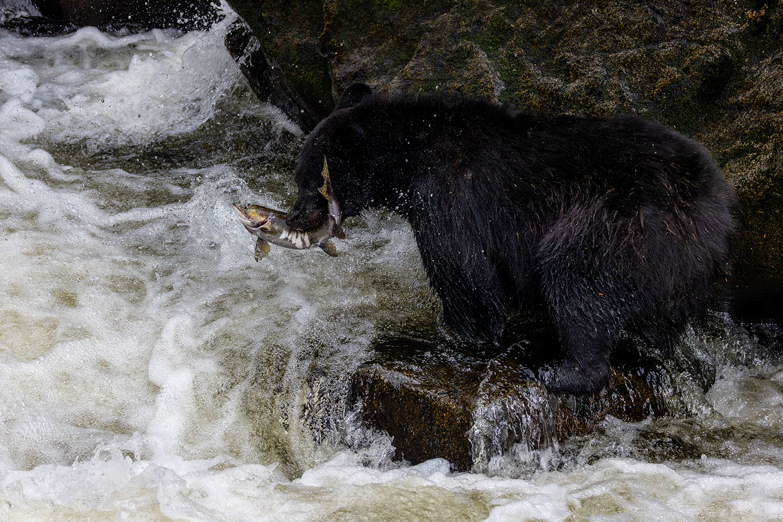 Black bear with salmon - Leslie Holmes